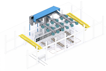 - Изделие перемещается в зону покраски при помощи крана. На этом этапе начинается подготовка воздуха – он должен быть нагрет до температуры, которая превышает температуру в цеху примерно на 3 градуса.