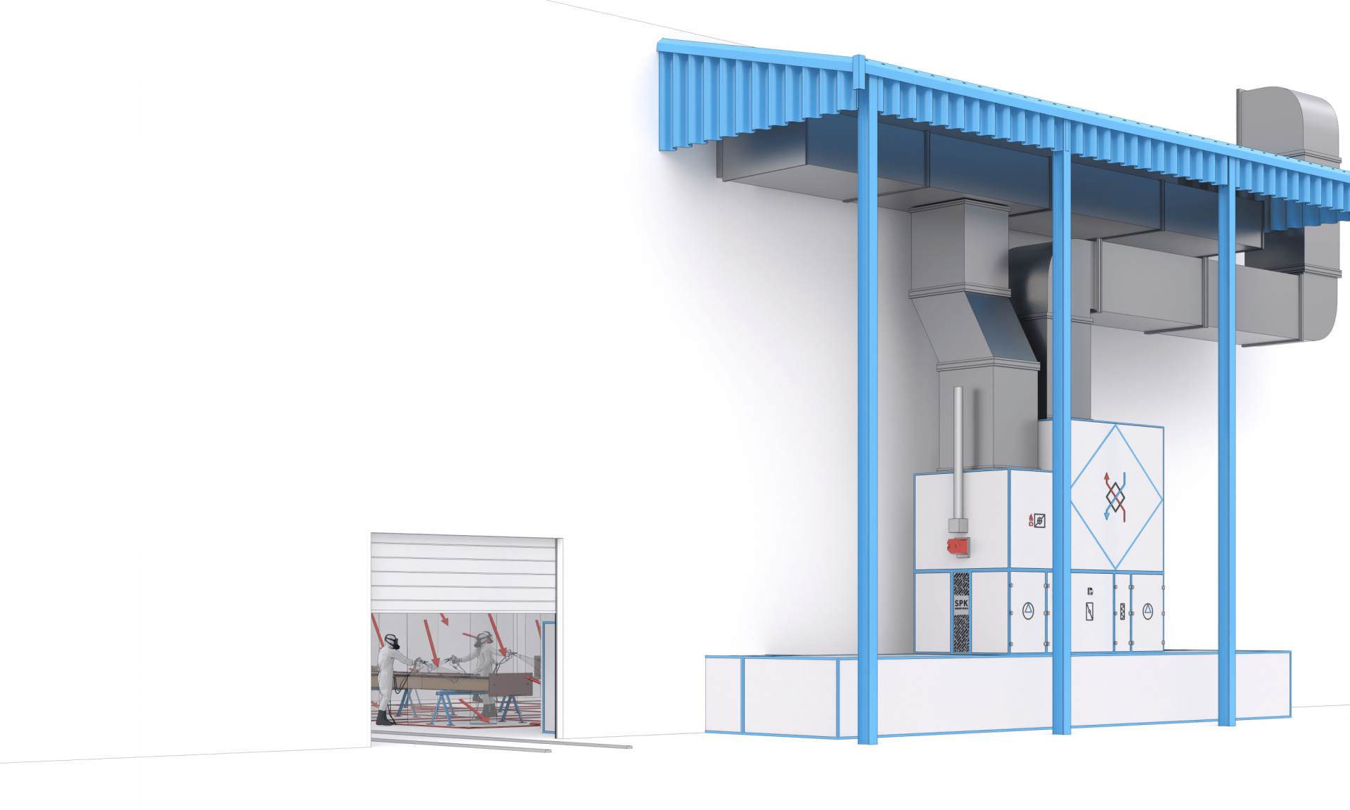 Данная система гарантирует безопасные и качественные условия окрашивания, поддерживая оптимальный микроклимат и эффективное удаление вредных паров и опыла.