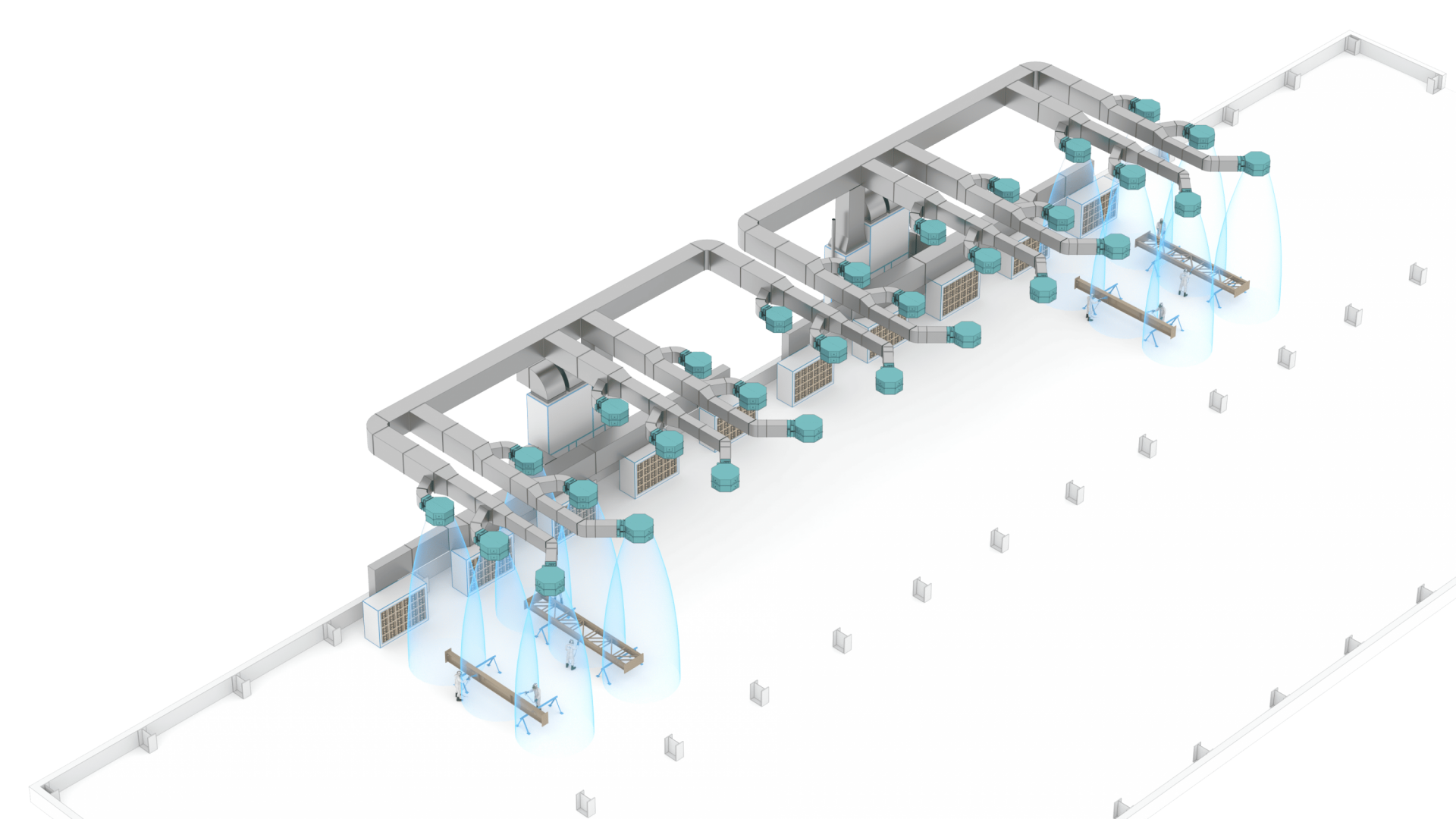 - Внутренние боковые вытяжные короба (с одной стороны цеха).