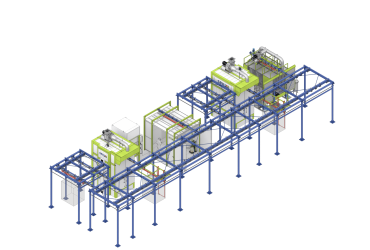 Модуль химической подготовки поверхности предназначен для обезжиривания, фосфатирования поверхности изделий перед окраской. В процессе обработки растворы и промывочные воды рециркулируются. Подогрев обезжиривающе-фостфатирующего раствора осуществляется до температуры 40-65 °C. Для поддержания рабочего состояния ванны используется система автоматического контроля и дозации химии, а также система очистки ванн от масла и шлама. Во избежание попадания паров раствора в цеховое пространство модуль оснащен вытяжной системой с каплеуловителями.