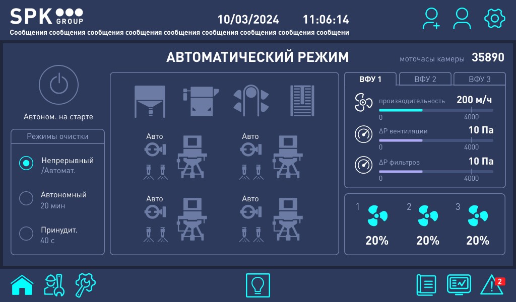 - отображение и хранение аварийных и предупреждающих сообщений;