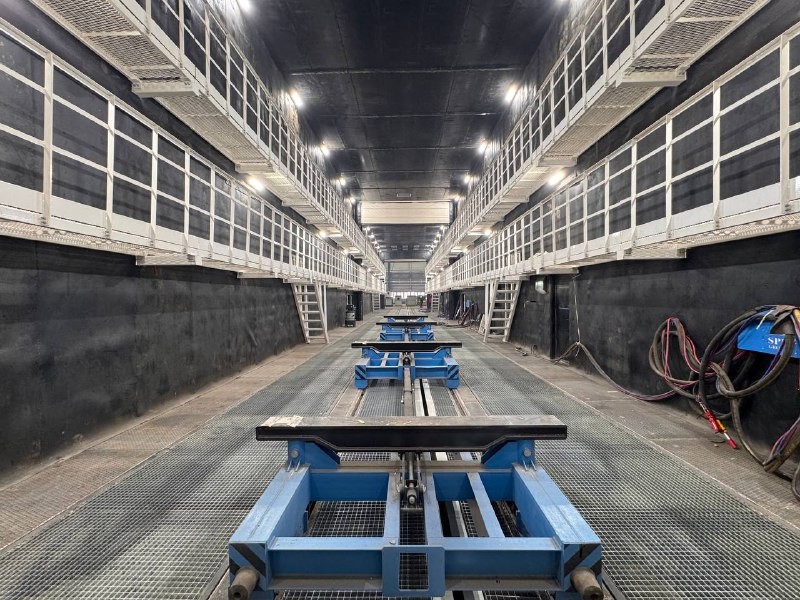 Разработка, поставка и монтаж комплекс оборудования дробеструйной камеры SPK с внутренними габаритами 45000х7000х8000 мм и окрасочно-сушильной камеры с габаритами 45000х7000х8000 мм.