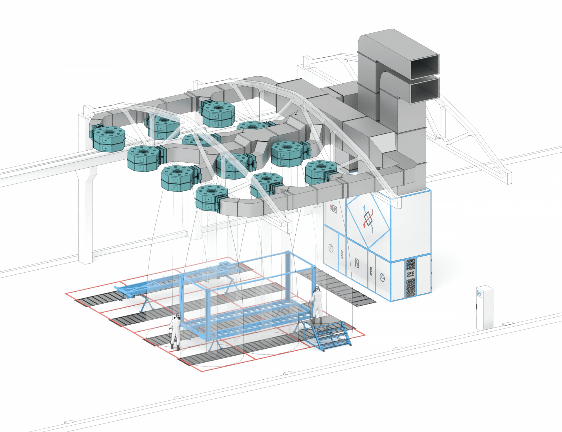 - Вентиляционные и фильтрационные системы обеспечивают пропускную способность до 20 000 м³/час.