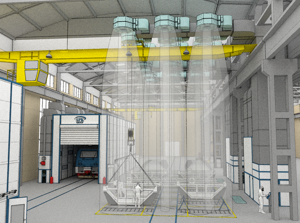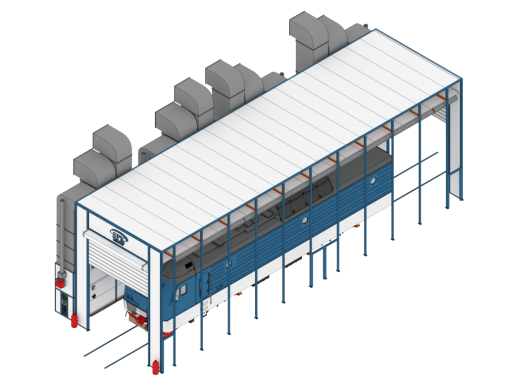 Покрасочное производство для локомотивов включает в состав: зону открытой окраски SPK-Z 24.9 и окрасочно-сушильную камеру SPK-22.6.7