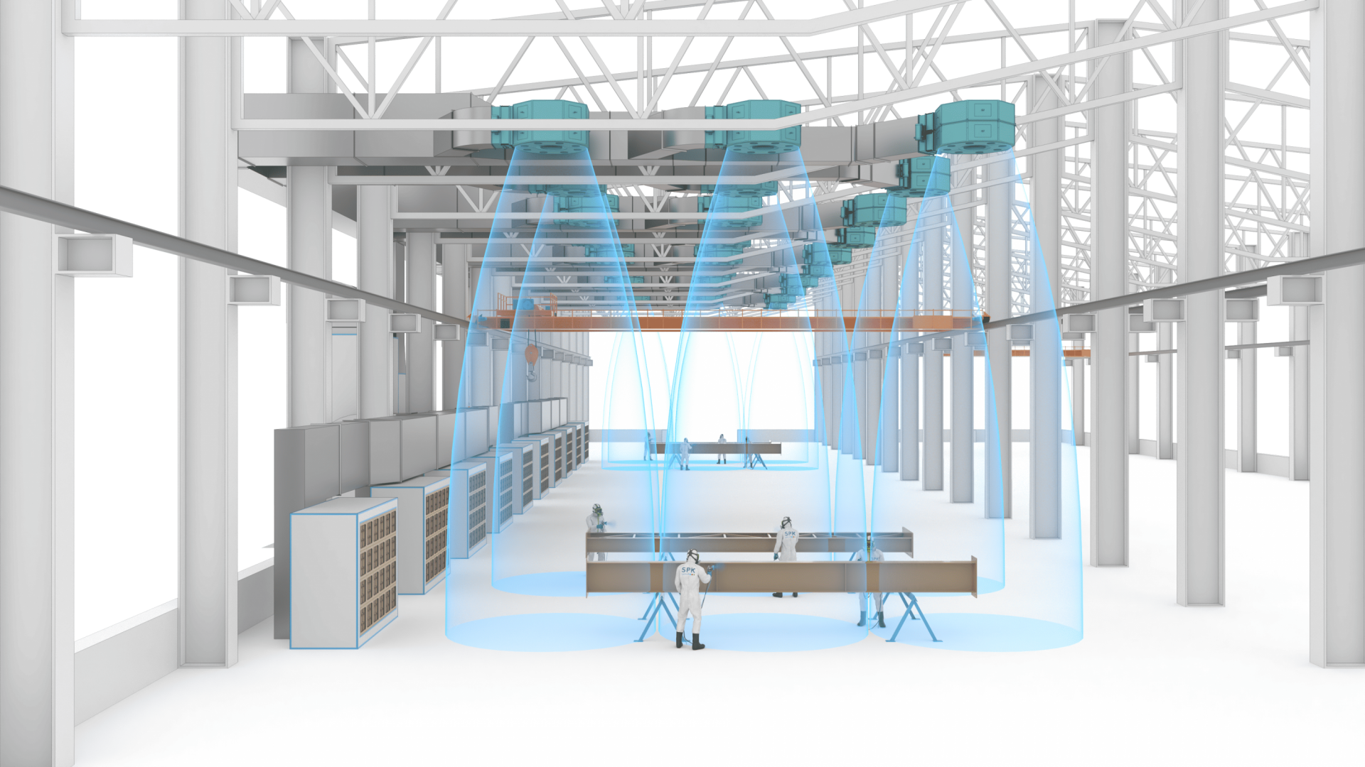 - Приточно-вытяжной вентилятор SPK-VU-36, выполненный в искробезопасном исполнении, с рабочими колесами и двигательной установкой взрывозащищенного типа. Мощность вентилятора — 36 000 м³/час, разделен на секции с фильтрацией G4 (два комплекта).