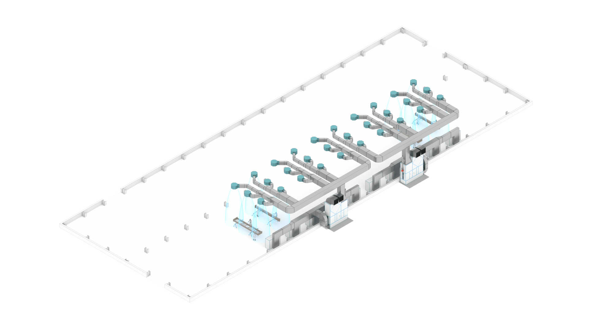- Внутренние боковые вытяжные короба (с одной стороны цеха).