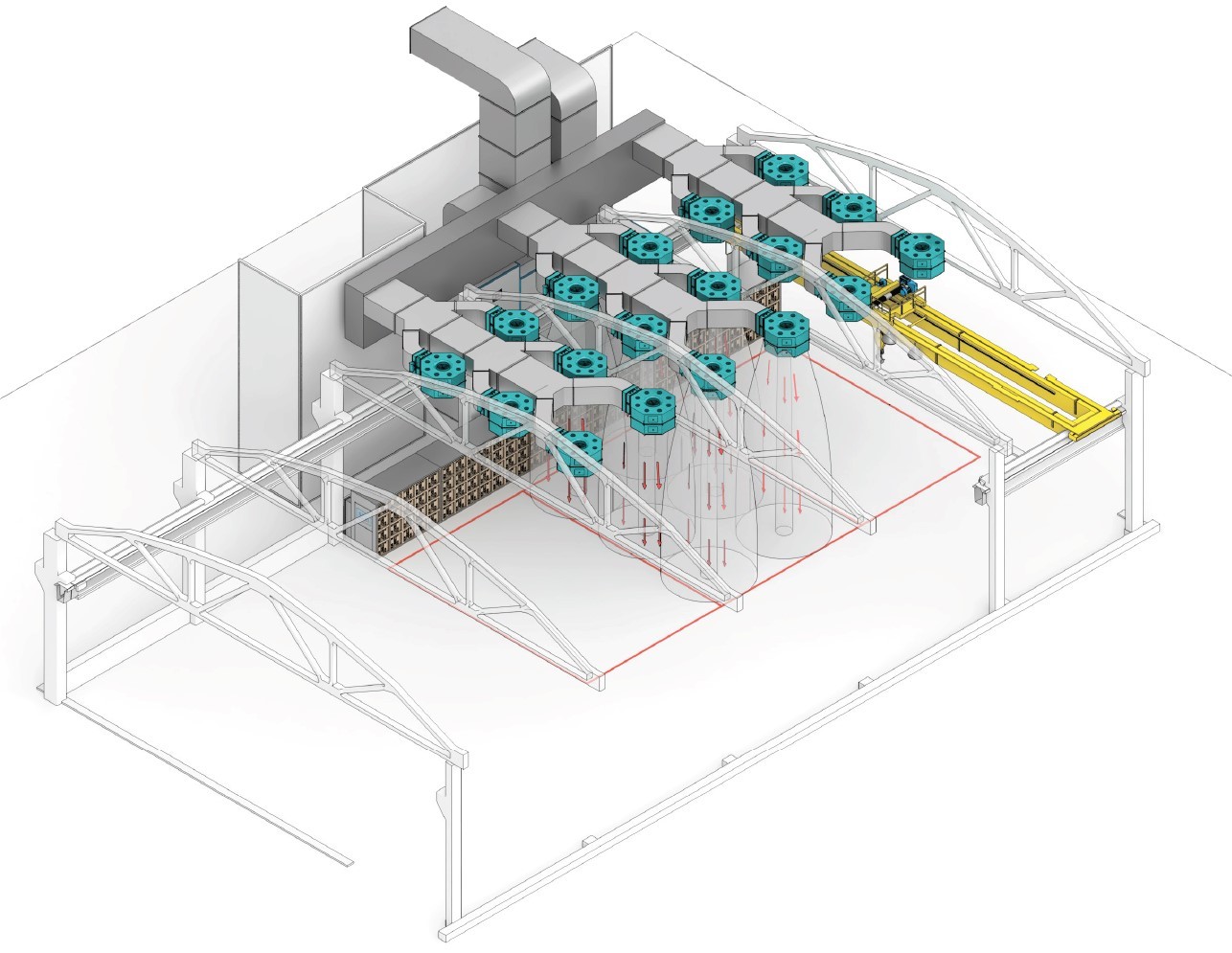 Зона открытой окраски — это комплекс оборудования и системы вентиляции, предназначенный для проведения окрашивания изделий в существующем или новом производственном помещении. Такой подход исключает необходимость возведения дополнительных ограждающих конструкций и создания отдельной транспортной системы. Устройство ЗОО — это современное и быстрые решение для промышленного окрашивания. Для устранения окрасочного тумана и снижения концентрации паров ЛВЖ в системе предусмотрена технологическая вентиляция, включающая: