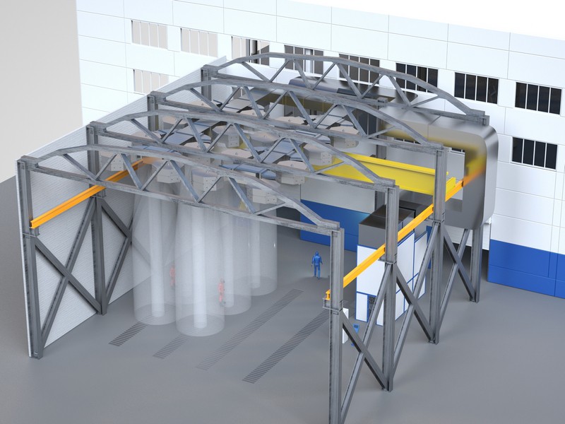 Габариты зоны: 12000х12000 мм. Высота размещения воздухораспределителей: до 15000 мм.