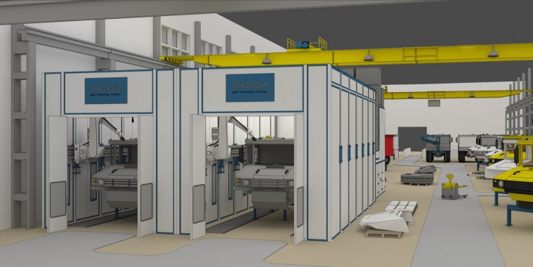 - SPK - камера покраски и сушки, размер (мм) 13000х6200х5500;