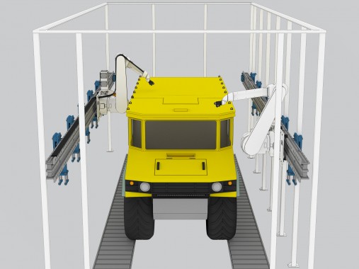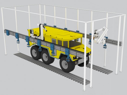 - Камеру на усиленном металлокаркасе, позволяющий осуществить подготовку 2 роботов на 6 осей и ещё одной линейной осью, для дальнейшего использования. Длина 15 м/п.