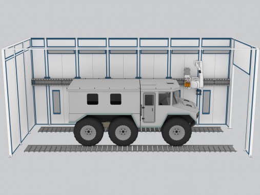 Спецкомплекс для проведения работ по окрашиванию (с предварительной подготовкой) специальной техники.