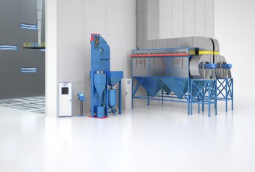 На производственной площадке в работе система рекуперации дроби для дробеструйной камеры SPK -