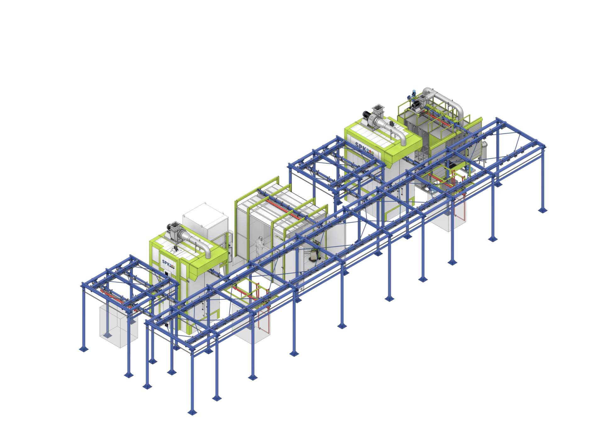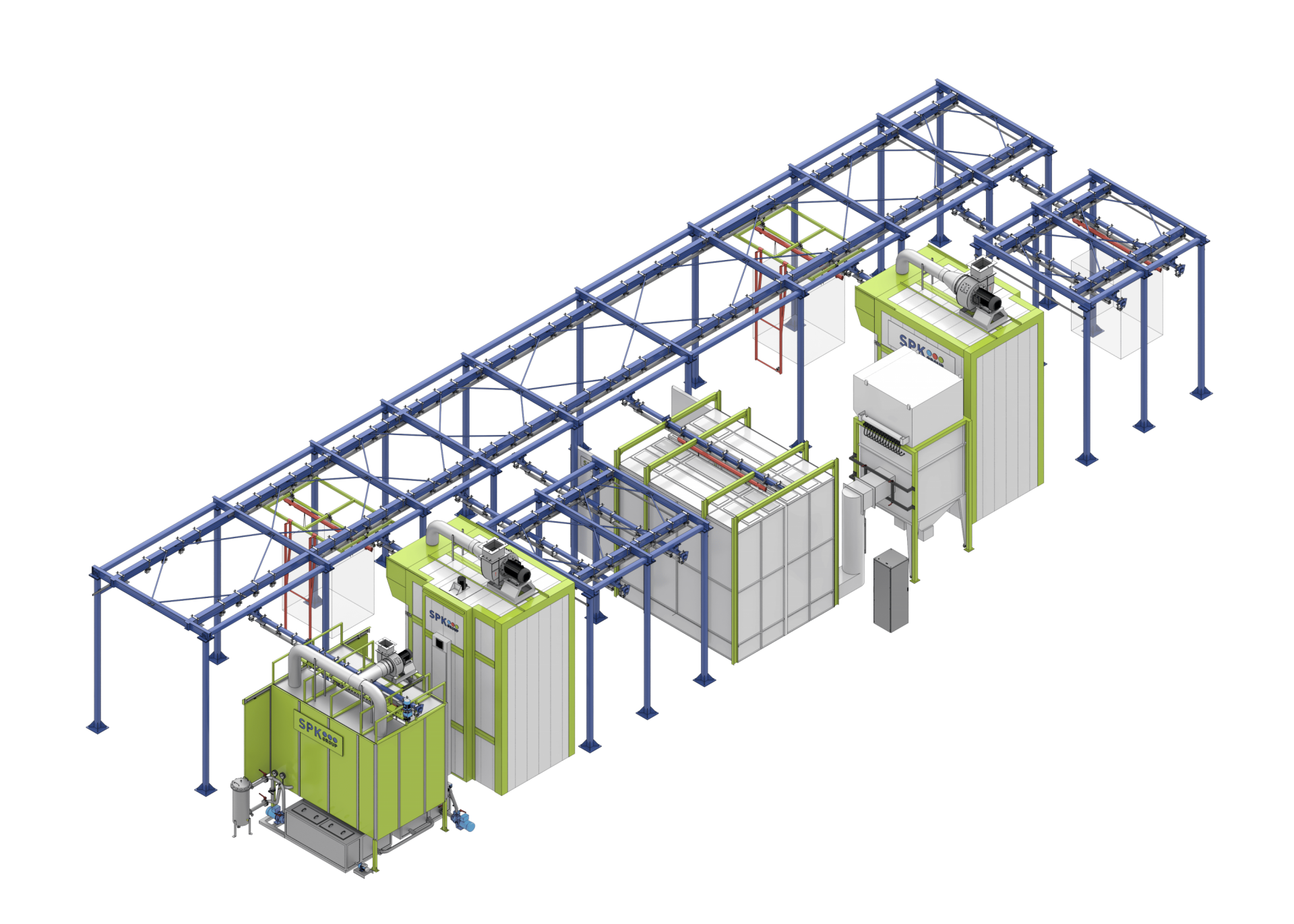 Комплекс оборудования для химической подготовки и порошковой окраски изделий с ручным подвесным конвейером SPK
