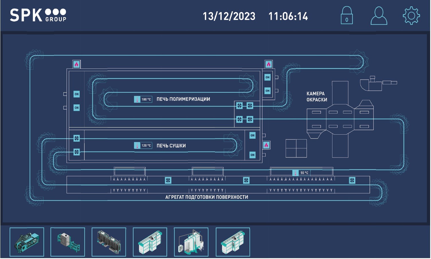 Все этапы работы линии контролируются сенсорной панелью с классом защиты IP65, доступом к основным выключателям, аварийной остановке, управлению освещением, таймеру, индикатору питания и журналу ошибок. Такой подход обеспечивает надежность, безопасность и контроль качества на всех этапах производственного процесса.