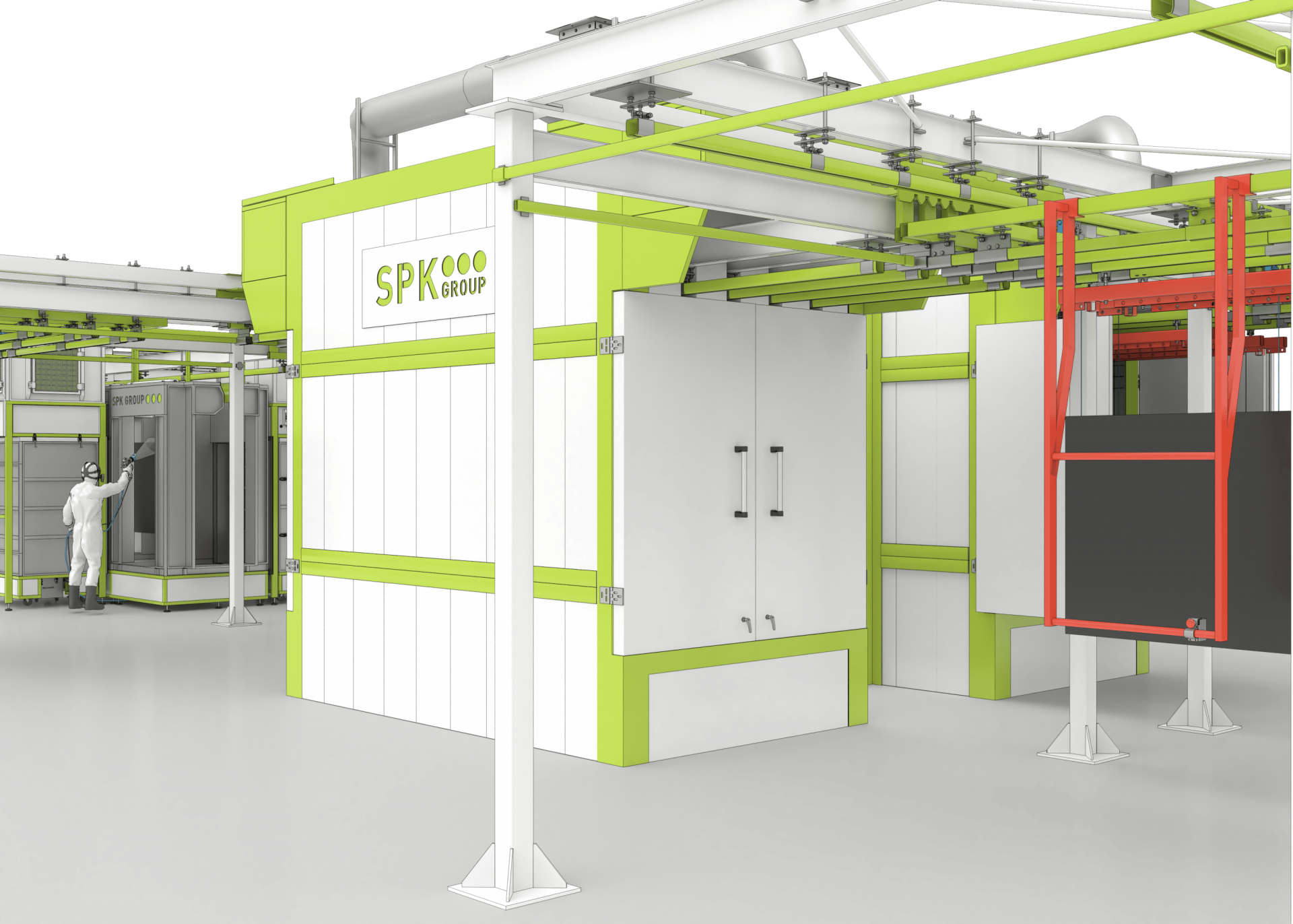 Комплекс оборудования SPK-30.12.4 для окраски и сушки изделий порошковым методом с подвесным конвейером