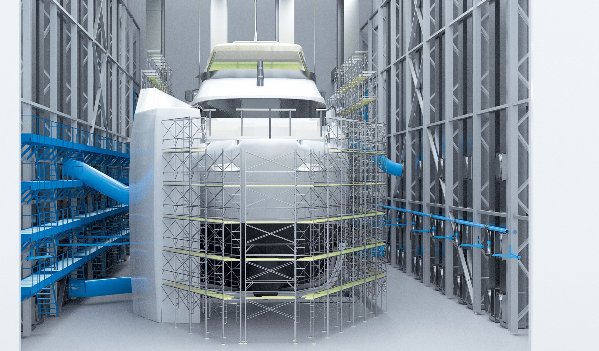 SPK-комплекс установлен для проведения ремонтных работ на корпусах яхт.