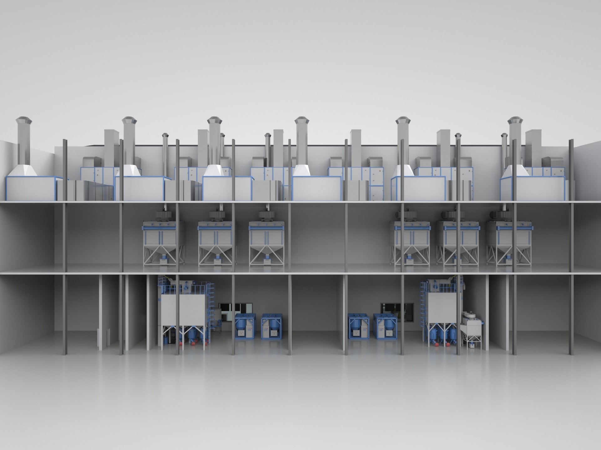 Размер комплекса — 75 000 х 50 000 х 12 000 мм.