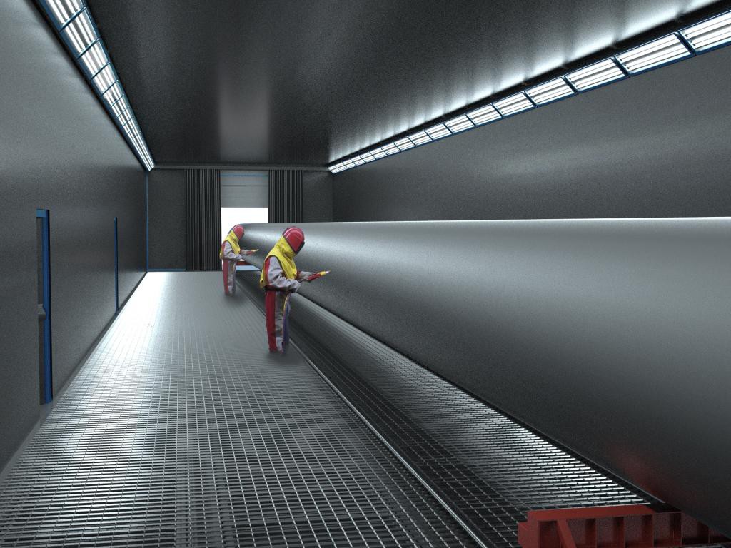Данная дробеструйная камера обитаемого типа в проходном исполнении предназначается для грубой ручной абразивной обработки свайных металлоконструкций. Габариты изделий максимальные: 39.000х1.420х1.420 мм.