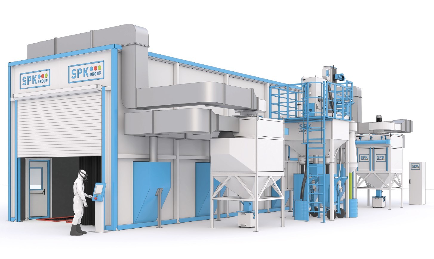 Материалы для обработки — 09Г2С, 10ХСНД, 600S, 700S. Рабочий режим — две смены по 8 часов Конструкция включает стальной каркас с звукоизоляционными панелями и защитным резиновым покрытием внутри стен и потолка для защиты от дроби. Ворота на торце позволяют загружать изделия размером до 4х4 м. Внутри установлены усиленные светильники со специальным стеклом для защиты от дроби. Для работы используются системы подачи воздуха, пылеуловители (циклоны), сепараторы и силосы объемом 2000 литров для дроби. Оборудование включает автоматические пневматические затворы и напорные агрегаты по 200 л на оператора. Камера оснащена мощной вентиляционной системой производительностью 13 000 м³/ч с фильтрами G4. Управление осуществляется через сенсорную панель. В комплект входят защитная одежда и дыхательные системы для операторов, стационарные эстакады для работы на втором уровне, а также схемы электроснабжения и пневматики. Данное оборудование обеспечивает эффективную подготовку поверхностей перед покраской или очистку после нее — будь то удаление ржавчины или старых покрытий методом дробеструйной обработки — при этом гарантируя безопасность операторов и высокое качество обработки изделий.