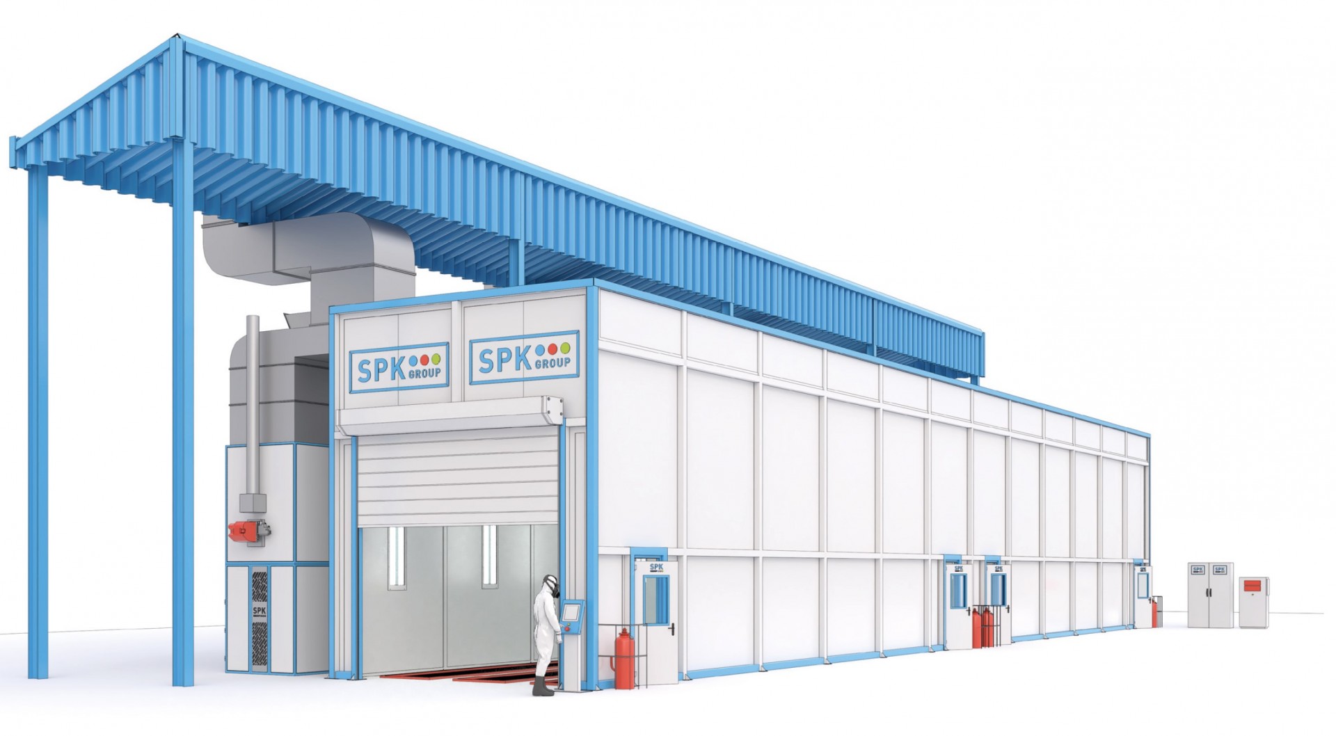 Камера окрасочно-сушильная тупикового типа, предназначенная для подготовки изделий к покраске, нанесения лакокрасочных покрытий и их последующей сушки при повышенной температуре. Внутри камеры создается равномерный поток подогретого воздуха, движущегося по боковой диагонали, что обеспечивает качественное покрытие поверхности. Используется сухая фильтрация воздуха, что позволяет эффективно удалять остатки краски и исключает необходимость дополнительных очистных систем.