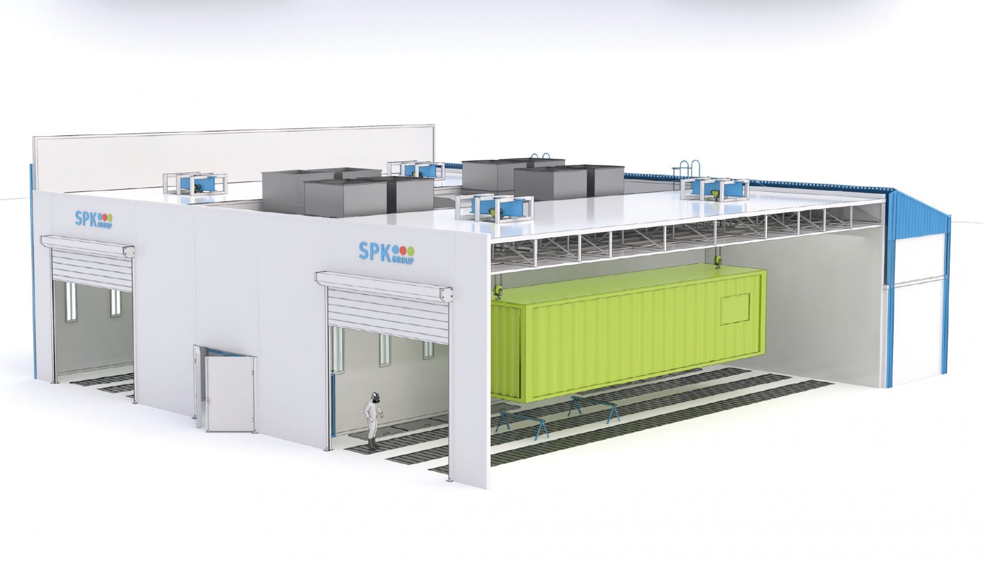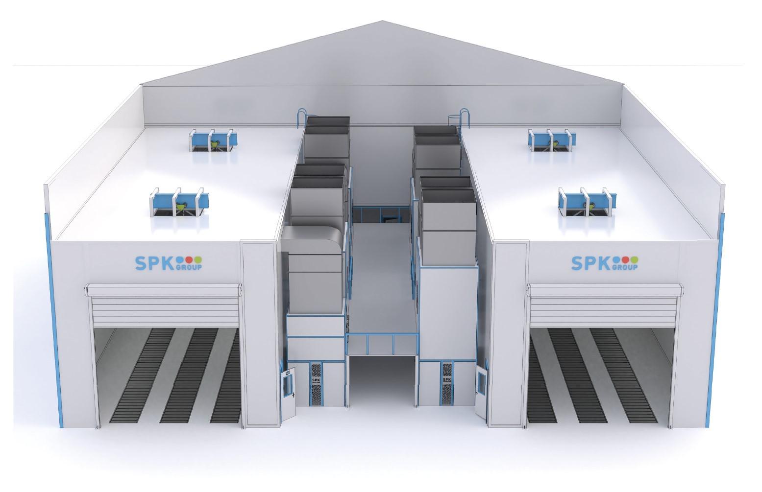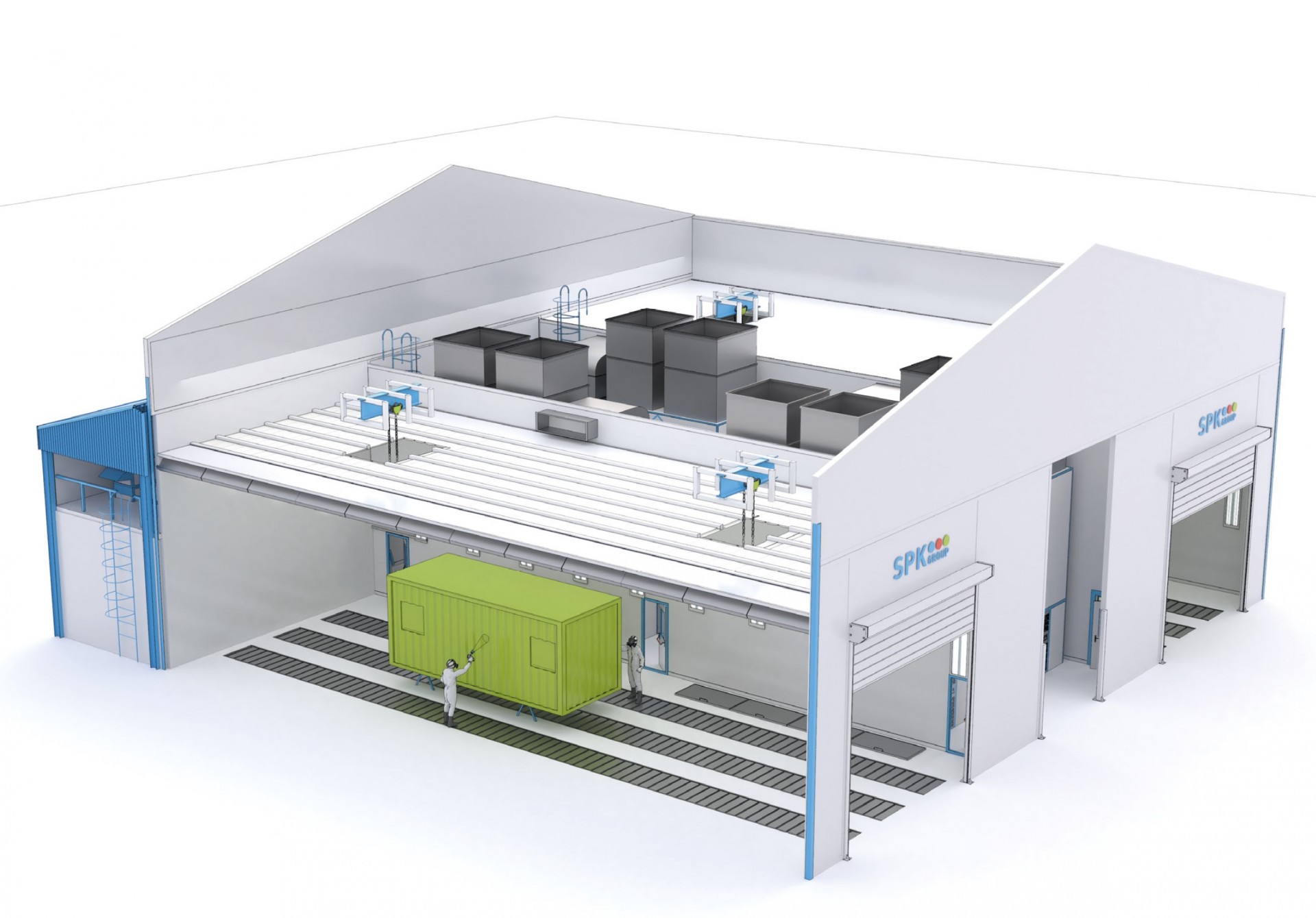 Двухсекционная окрасочно-сушильная камера SPK-SCB-26.24.10. уличного исполнения
