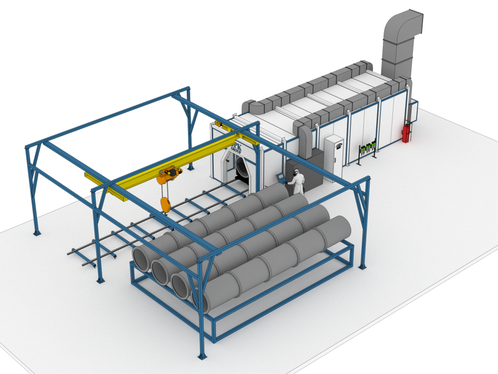 Изделиями являются металлоконструкции длиной 7200 мм и диаметром 920 мм.