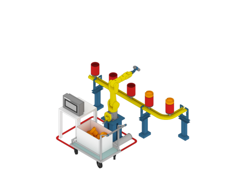 - Участок удаления верхней заглушки и роботизированного нанесения символьной маркировки. Снимаемые заглушки накапливаются в специальном контейнере.