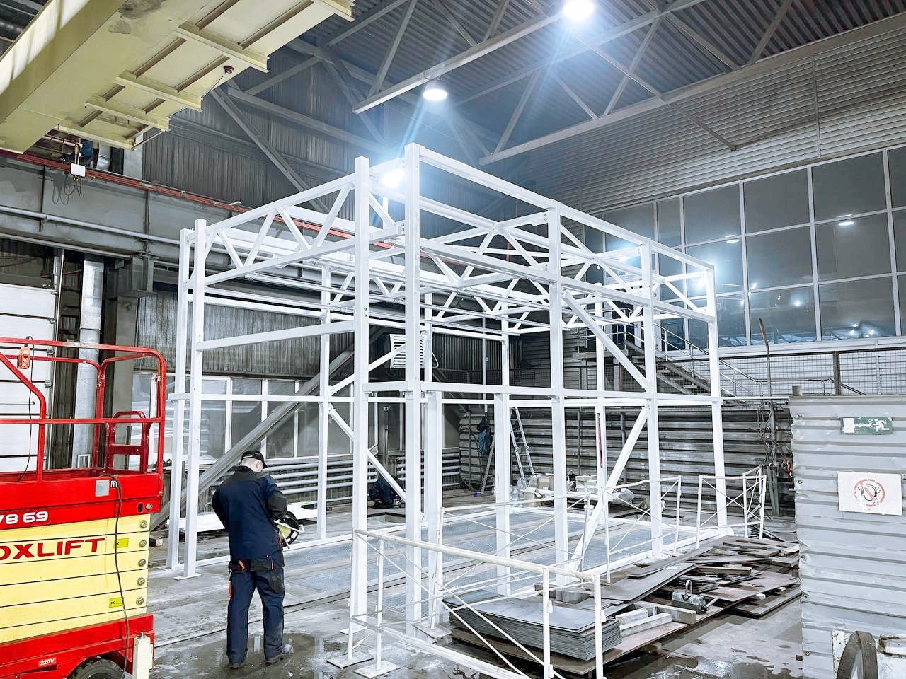 На площадке «Сиб-Дамель» началась сборка окрасочно-сушильной камеры. В ближайшее время в ней начнется финальная обработка узлов горно-шахтного оборудования, предназначенного для угольных предприятий Кузбасса. На данный момент установлен только металлический каркас, но он уже спроектирован с учетом серьезных задач: