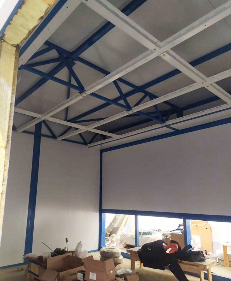 Внутреннего исполнения. Размеры внутренние: 6х4,5х3,2 м. Вытяжка производится в два канала, размещенных в боковых стенах камеры. Конструкция кабины стальная каркасная + сэндвич-панели.