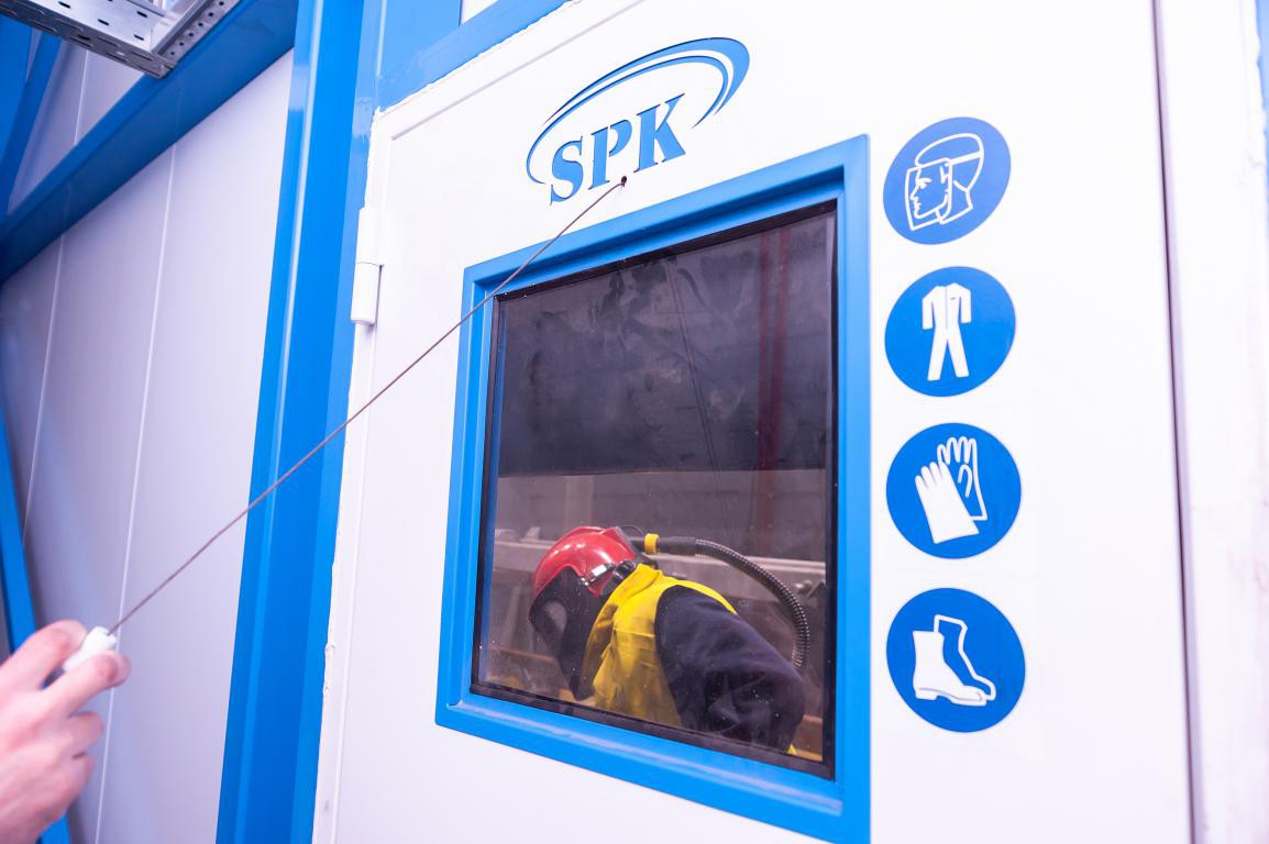 При помощи транспортной системы детали загружаются внутрь дробеструйной камеры. Предусмотрено, что очистка будет производиться оператором в ручном режиме. Конструкции должны быть сухими.
