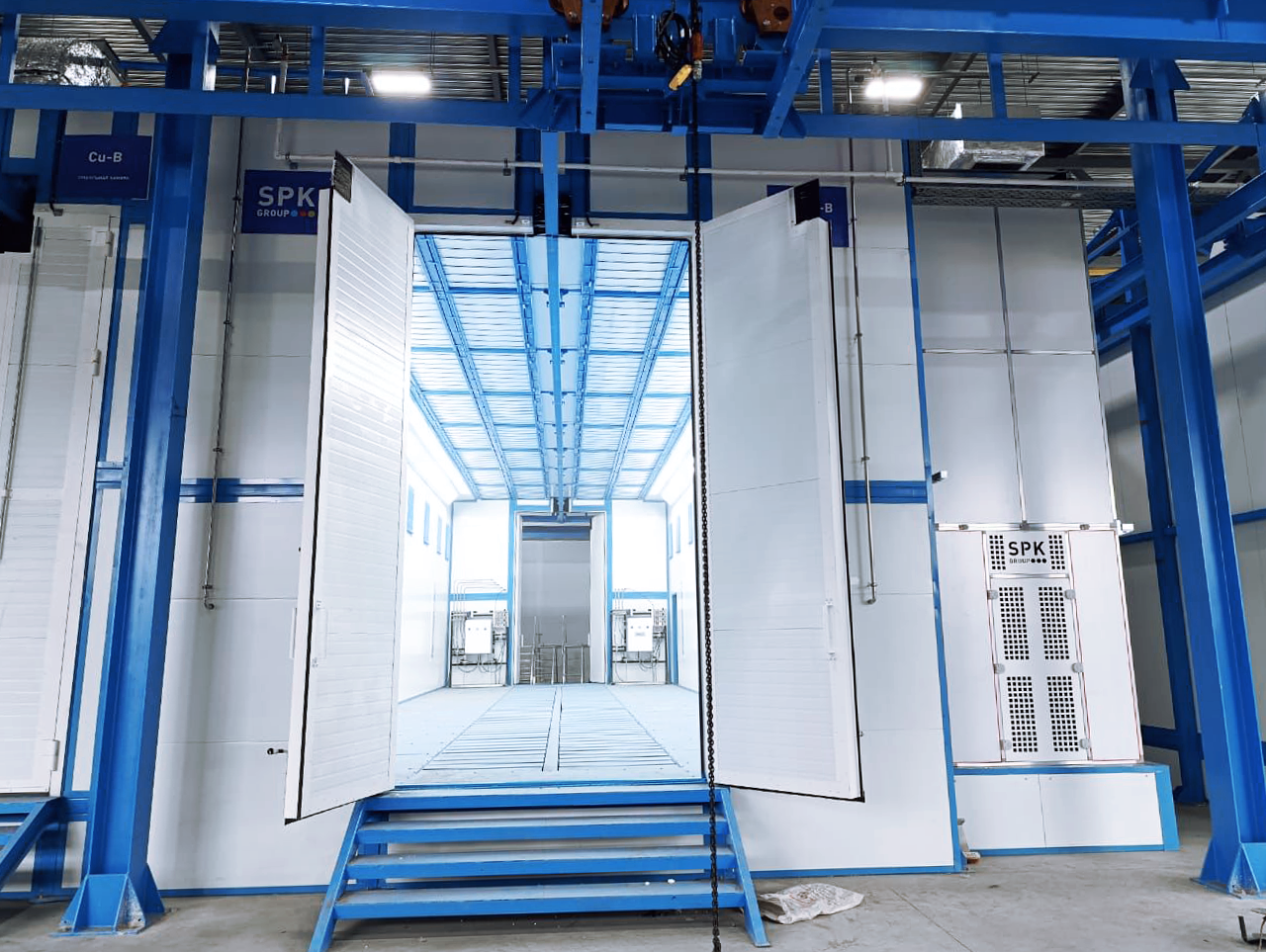 - Конструкция окрасочной камеры обладает надежностью и необходимым конструктивом для перспективной установки окрасочных роботов.