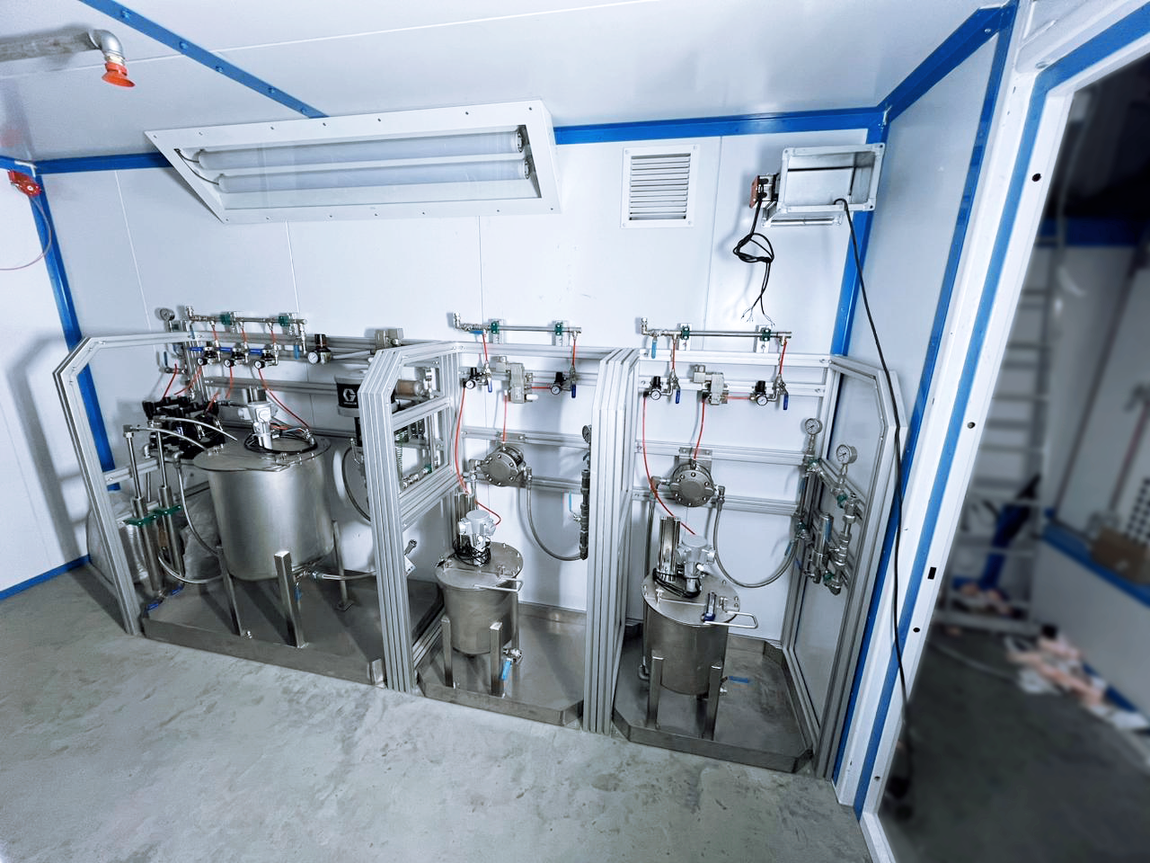 - Рабочие жидкости красок подаются по нержавеющей трубе в камеру окраски, в которой смешивание происходит в автоматическом режиме.