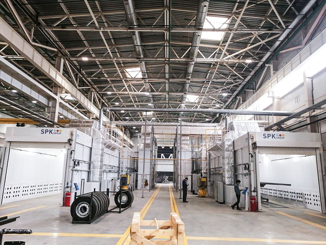 - Камеры грунтовки и окраски изготовлены под дальнейшую роботизацию и выдерживают все расчетные статические и динамические нагрузки от роботов, способных дотянуться даже до внутренних поверхностей рамы.