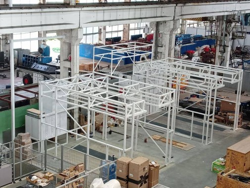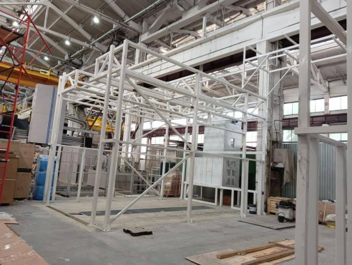 Камера окрасочно-сушильная тупикового исполнения. Функционал камеры – подготовки изделий к окраске, нанесение ЛКП, сушка поверхности при повышенной температуре. В камере обеспечивается направленный равномерно подогретый и очищенный воздух, направленный сверху-вниз. В камере сухой способ фильтрации. Изделия – корпуса станции управления. Максимальные размеры изделий составляют 4000х2000х1500 мм. Вес одного изделия составляет 4 т. Площадь окрашиваемого одного изделия составляет 24 м2.