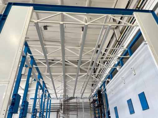 Камера окрашивания смонтирована на усиленном металлокаркасе, обшита сэндвич-панелями.