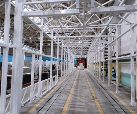 Полная реконструкция цеха окраски с заменой всех узлов, в том числе пластинчатого конвейера, в существующем приямке.