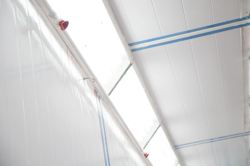 Кабина малярной камеры состоит из крепленных между собой профилем с термоаккустической изоляцией сэндвич панелей. Толщина панелей - 60 мм. Осветительные плафоны вмонтированы в панели. Конструкция плафонов включает несущую часть с крепежом для ламп, а также рамки, оборудованные термостойким стеклом.