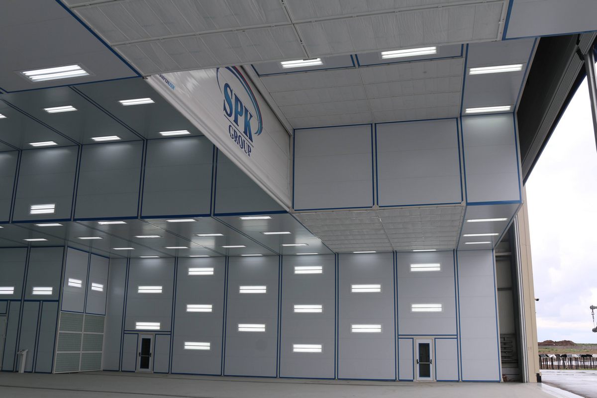 Необходимые технологические характеристики в зоне проведения работ. Производители ЛКМ устанавливают требования по условиям покрасочных работ. Основываясь на рассчитанной производительности вентустановок и климатических параметров места, где размещается производство, мы комплектуем покрасочно-сушильные камеры блоками нагрева воздуха в холодный период. Камеры покраски для авиации от SPK обеспечивают уровень освещенности до 1000 Лк.