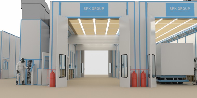 Производственный участок по окрашиванию продукции авиастроения образован камерами из линейки SPK GROUP в составе: